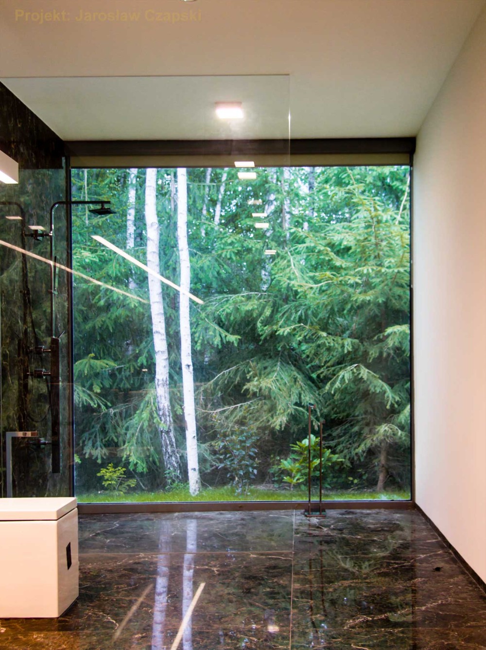 Szkło w łazience warto zabezpieczyć preparatem ClearShield. To rozwiązanie jest stosowane przez poważnych producentów kabin. Zabezpiecza ono szkło przed starzeniem się, spowalnia odkładanie się kamienia i ułatwia pielęgnację. Nasze doświadczenia wskazują, że usunięcie z szyby osadu z twardej wody wymaga jedynie przetarcia wilgotną szmatką.